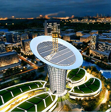 大型風(fēng)光互補(bǔ)與建筑一體化系統(tǒng)此系統(tǒng)由3500㎡的太陽(yáng)能光伏發(fā)電系統(tǒng)和一組萬(wàn)瓦級(jí)的新型垂直軸風(fēng)力發(fā)電機(jī)組成。裝機(jī)容量8KW的風(fēng)力發(fā)電機(jī)和320KW的光伏發(fā)電系統(tǒng)每年發(fā)電量約48萬(wàn)度,占整棟大樓自身用電量的14%,遠(yuǎn)遠(yuǎn)高出中國(guó)綠色建筑評(píng)價(jià)標(biāo)準(zhǔn)中2%的要求。