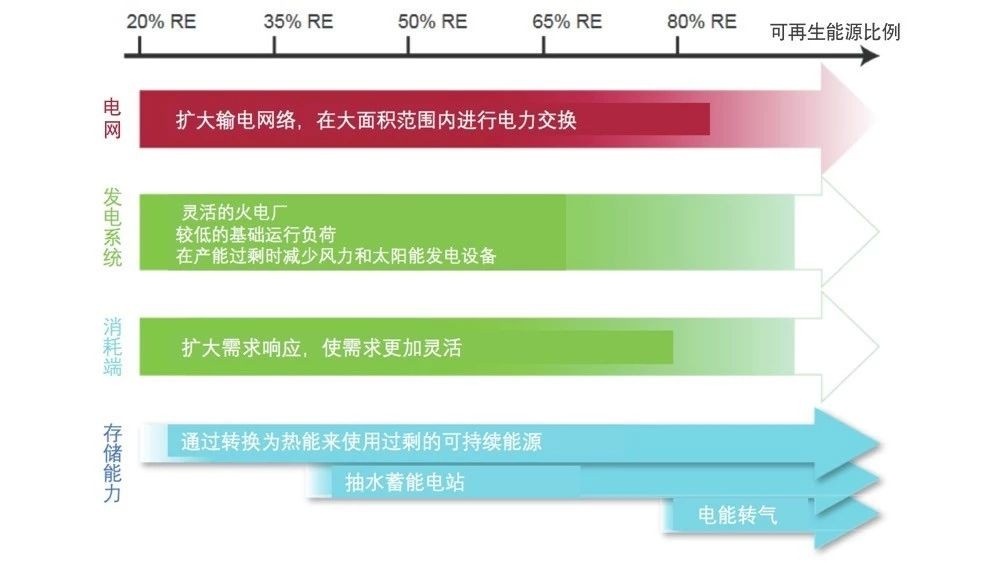 理論上,有許多方法可以彌補可繼續(xù)能源供電過程中的供需不平衡問題。國際能源署(IKA)的專家研究認為,由于電力系統(tǒng)中的可再生能源份額不斷增長,應(yīng)當從成本、實用性和特定需求三個方面提升可持續(xù)能源供電的實用性: