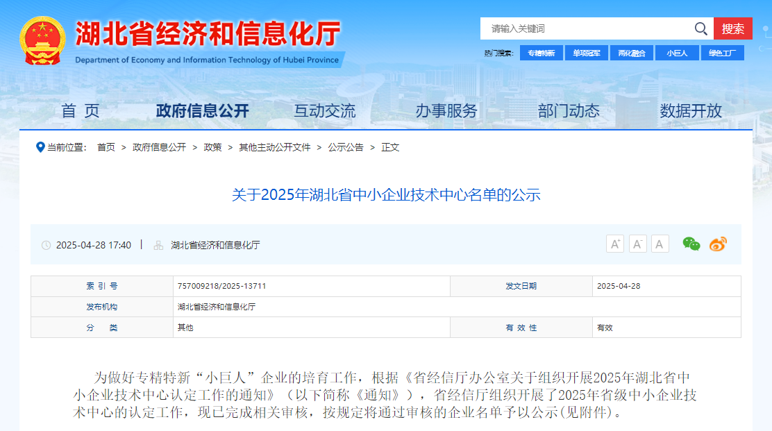 近日,湖北省經(jīng)濟(jì)和信息化廳公示了2025年度湖北省中小企業(yè)技術(shù)中心認(rèn)定名單,我院3家企業(yè)——武漢羿變電氣有限公司、武漢瑞科美新能源有限責(zé)任公司、武漢極目智能技術(shù)有限公司憑借核心技術(shù)突破與創(chuàng)新成果榮耀登榜。此次認(rèn)定標(biāo)志著三家企業(yè)在電力物聯(lián)、循環(huán)經(jīng)濟(jì)及智能駕駛領(lǐng)域的行業(yè)標(biāo)桿地位獲得高度認(rèn)可,充分彰顯了我院在企業(yè)技術(shù)創(chuàng)新和產(chǎn)業(yè)升級賦能方面的顯著成效。