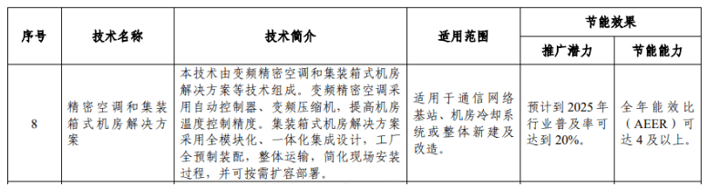 近日,工業(yè)和信息化部發(fā)布了《國家工業(yè)和信息化領域節(jié)能技術裝備推薦目錄(2022年版)》(以下簡稱“推薦目錄”)。推薦目錄分為工業(yè)節(jié)能技術、信息化領域節(jié)能技術和高效節(jié)能裝備三大類,包含工業(yè)節(jié)能技術11項,信息化領域節(jié)能技術3項,高效節(jié)能裝備8項。其中,海悟變頻精密機房空調、集裝箱數據中心和變頻精密基站空調,憑借高能效、高可靠、智能化的優(yōu)勢成功入選該目錄,充分展示了海悟產品在通信領域的技術創(chuàng)新能力、設計研發(fā)能力以及相關實踐應用能力的高度認可,更是對促進科技實力和綜合實力躍上新臺階的重要體現。