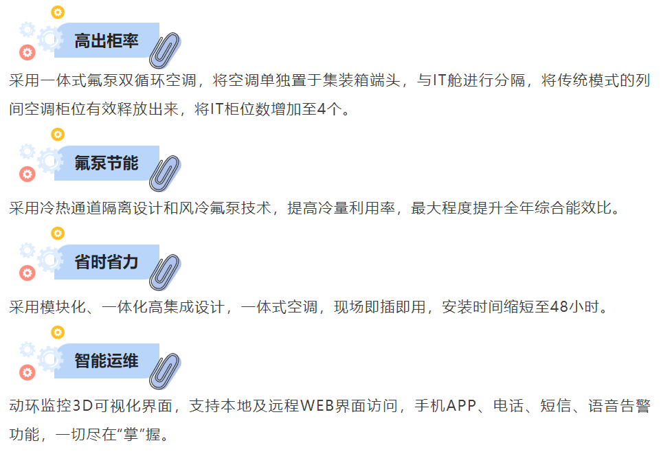 海悟集裝箱數據中心采用“把數據中心裝進集裝箱”的設計理念,將“機柜、電源、配電、空調末端、綜合布線、消防、監(jiān)控管理”系統(tǒng)一體化集成至集裝箱中,實現輕松安裝,快速轉運。