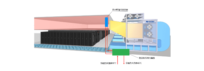 AHU空調(diào)系統(tǒng)是一種被大型數(shù)據(jù)中心機房廣泛采用的溫控方式,尤其是在北方地區(qū),能很好的利用自然冷源,大幅降低全年運行PUE。其余熱回收原理見下: