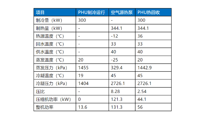 在冬季采暖季節(jié), 海悟PHU熱回收機組可維持更高的蒸發(fā)溫度,利用小壓比壓縮機,以極致的的效率產(chǎn)出熱能,整機制熱能效比空氣源熱泵機組有顯著提升,從下面的對比表里可以一探端倪: