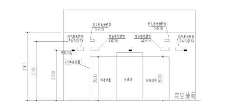 IT機(jī)房模塊間機(jī)柜高度為2000~2200mm,上部設(shè)置綜合布線和列頭柜出線橋架,強(qiáng)弱電間距300mm,凈高需求約3105~3400mm。