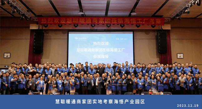 本屆大會新增工廠實地考察環(huán)節(jié),12月19日下午,由全國各地超過150名經(jīng)銷商、代理商、服務商、采購商組成的慧聰暖通商家團蒞臨海悟產(chǎn)業(yè)園區(qū)考察。