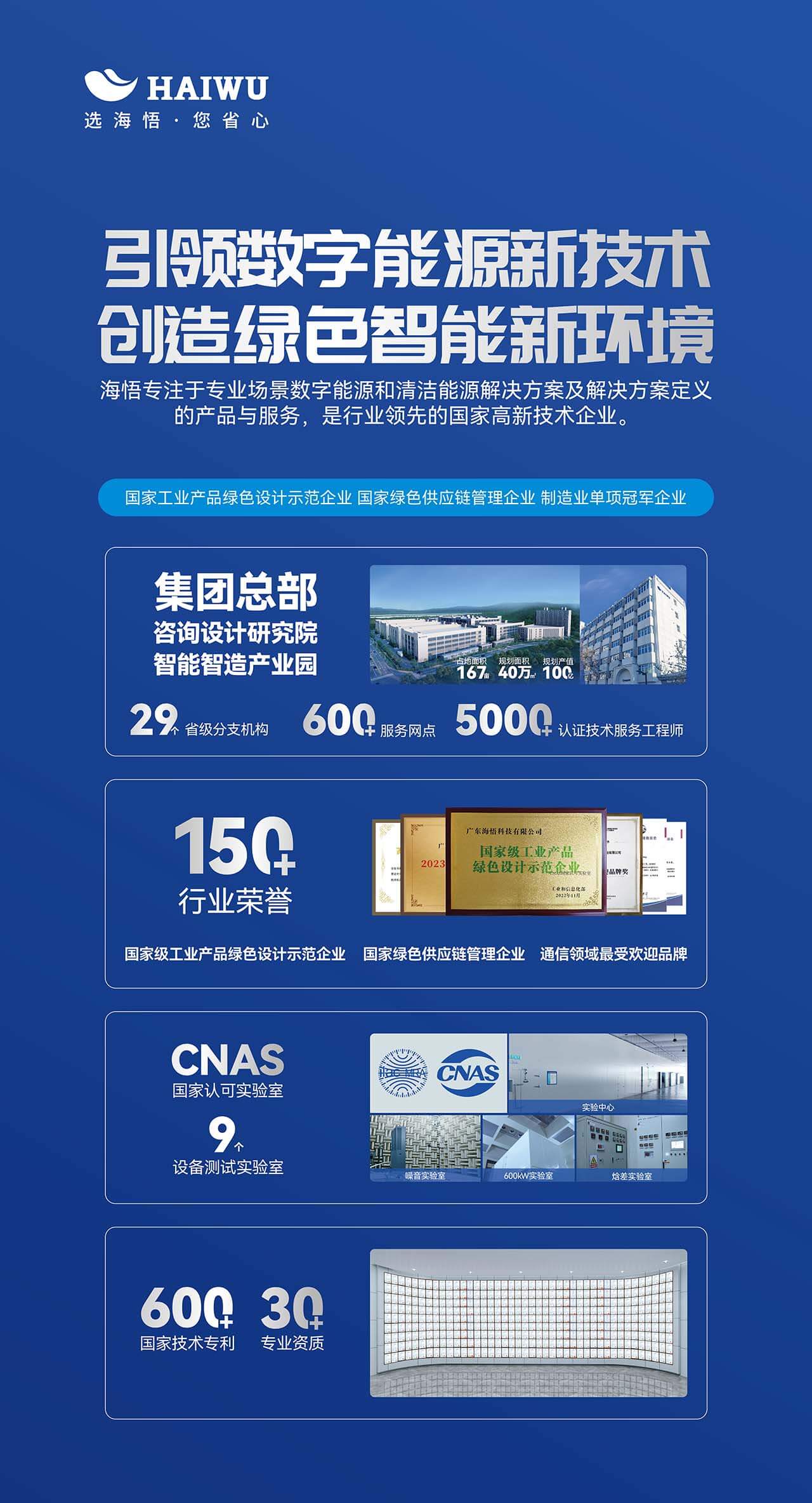 作為行業(yè)的領(lǐng)軍品牌,海悟深耕咨詢(xún)、設(shè)計(jì)、聯(lián)合開(kāi)發(fā)、機(jī)電總包、測(cè)試認(rèn)證、綜合代維、優(yōu)化升級(jí)全價(jià)值鏈垂直整合。擁有產(chǎn)值規(guī)模達(dá)百億的大型智能制造產(chǎn)業(yè)群,具備國(guó)際化一流的生產(chǎn)智造實(shí)力。300+專(zhuān)業(yè)研發(fā)技術(shù)人員,600+國(guó)家技術(shù)專(zhuān)利,具備建筑工程設(shè)計(jì)甲級(jí)資質(zhì)的咨詢(xún)?cè)O(shè)計(jì)研究院在行業(yè)獨(dú)樹(shù)一幟,每一項(xiàng)數(shù)據(jù)都彰顯著海悟強(qiáng)大的定制開(kāi)發(fā)能力和創(chuàng)新研發(fā)實(shí)力。憑借29年的堅(jiān)實(shí)邁步,海悟已獲國(guó)家級(jí)工業(yè)產(chǎn)品綠色設(shè)計(jì)示范企業(yè)、國(guó)家綠色供應(yīng)鏈管理企業(yè)、制造業(yè)單項(xiàng)冠軍企業(yè)等150+行業(yè)榮譽(yù),綜合實(shí)力獲得多方認(rèn)可。