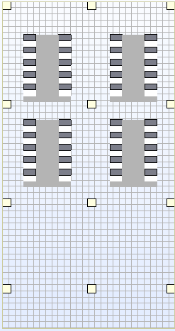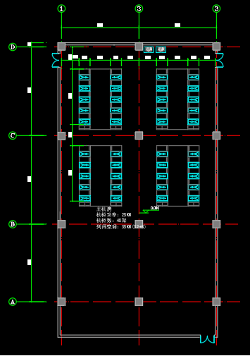 根據(jù)設(shè)計(jì)方案部署4個(gè)相同的雙排微模塊,每個(gè)微模塊分別部署10(8+2)臺列間級精密空調(diào),共40(32+8)臺。列間級精密空調(diào)單機(jī)冷量:35kW;額定風(fēng)量:8000m³/h;空調(diào)設(shè)備控制22℃送風(fēng),35℃回風(fēng);空調(diào)背面回風(fēng),正面出風(fēng);數(shù)量總計(jì)40臺。每座微模塊默認(rèn)位置共10架IT機(jī)架,IT機(jī)架負(fù)載25kW /rack ,機(jī)房總計(jì)40架IT機(jī)架;微模塊封閉冷通道,冷通道寬1.8m。該方案布置方案如下圖: