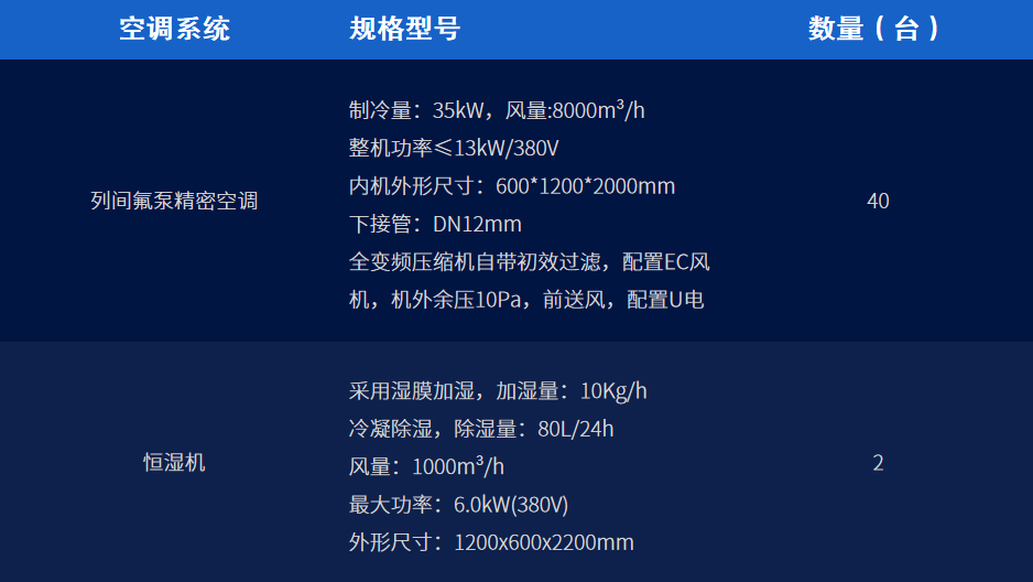 列間級精密空調(diào)方案具體新增空調(diào)設(shè)備明細(xì)如下: