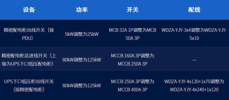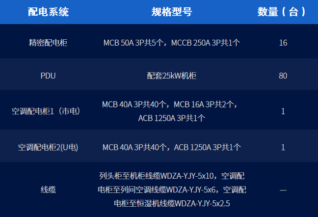 列間級精密空調(diào)方案具體新增配電設(shè)備明細(xì)如下: