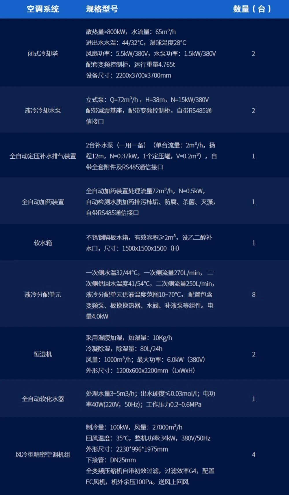冷板式液冷空調(diào)方案具體新增空調(diào)設(shè)備明細如下:
