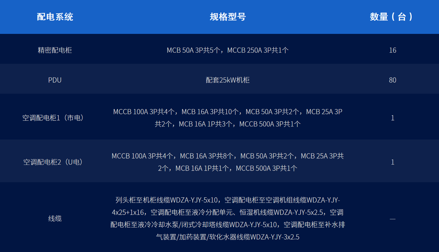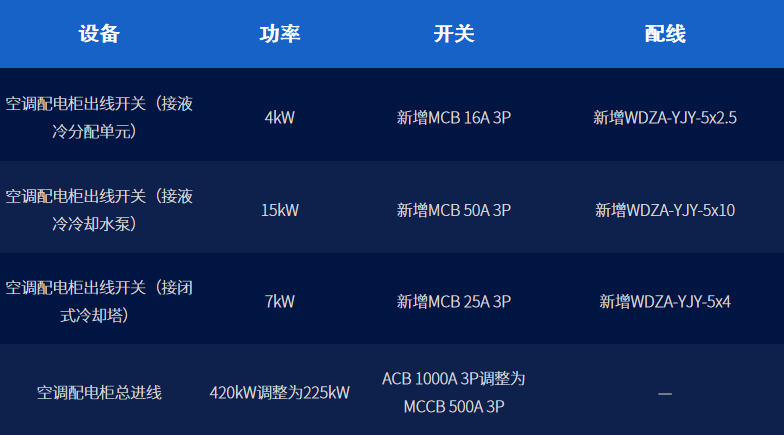 冷板式液冷空調(diào)方案具體新增配電設(shè)備明細如下: