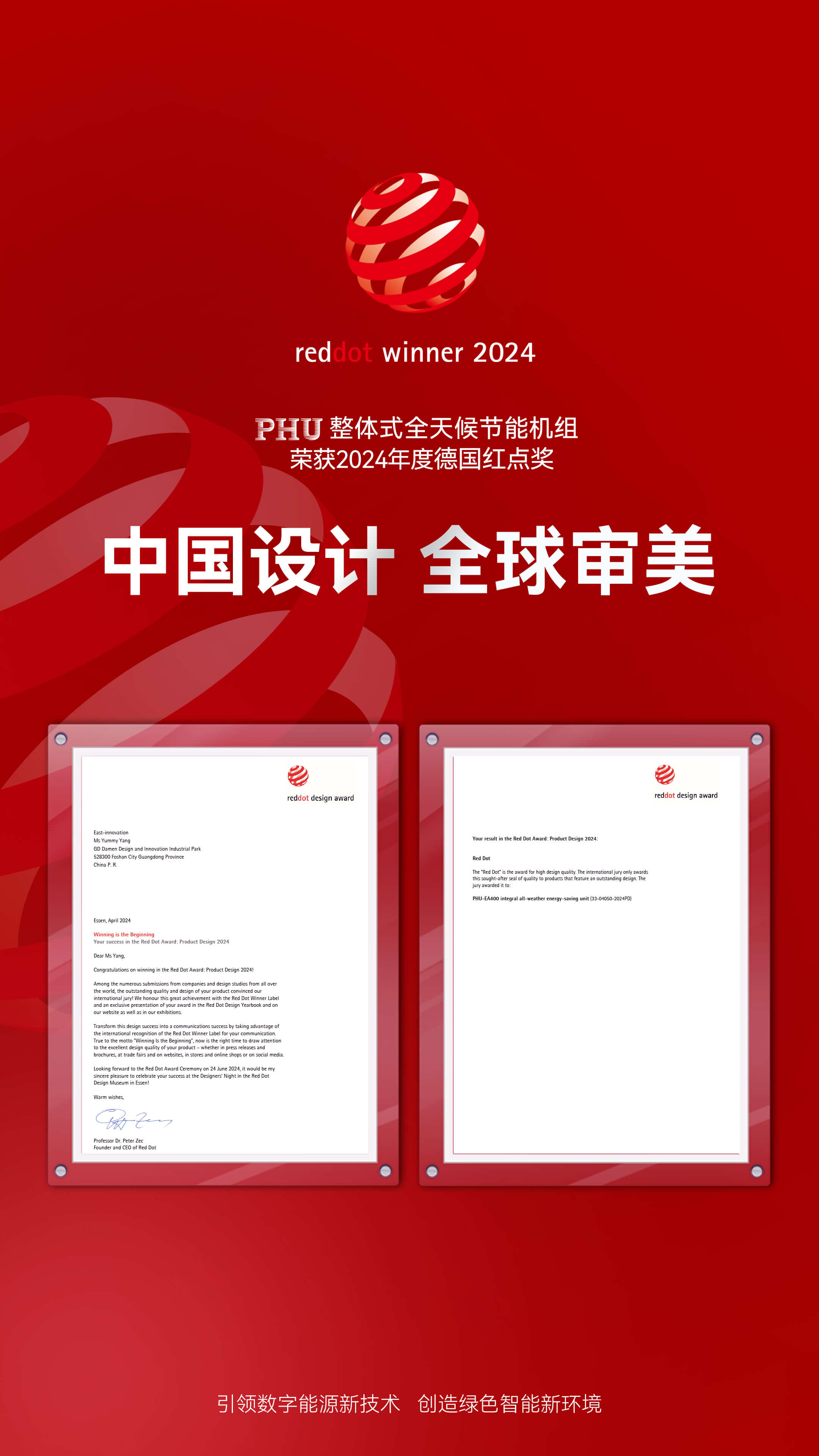 PHU整體式全天候節(jié)能機(jī)組榮獲2024德國紅點(diǎn)獎