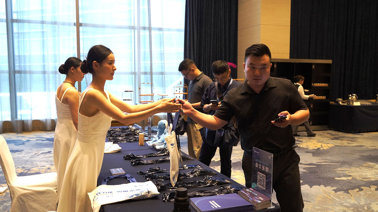 活動(dòng)還未正式開(kāi)始,現(xiàn)場(chǎng)已是一片熱鬧非凡。嘉賓們手持特制的簽到卡,領(lǐng)取了海悟集團(tuán)的精心準(zhǔn)備——公司介紹折頁(yè)、精美小禮品,以及詳盡的數(shù)據(jù)中心解決方案畫(huà)冊(cè)。每一份資料都承載著海悟?qū)G色節(jié)能技術(shù)的執(zhí)著追求與不懈創(chuàng)新。背景簽名墻前,嘉賓們紛紛留影,記錄下這一激動(dòng)人心的時(shí)刻。