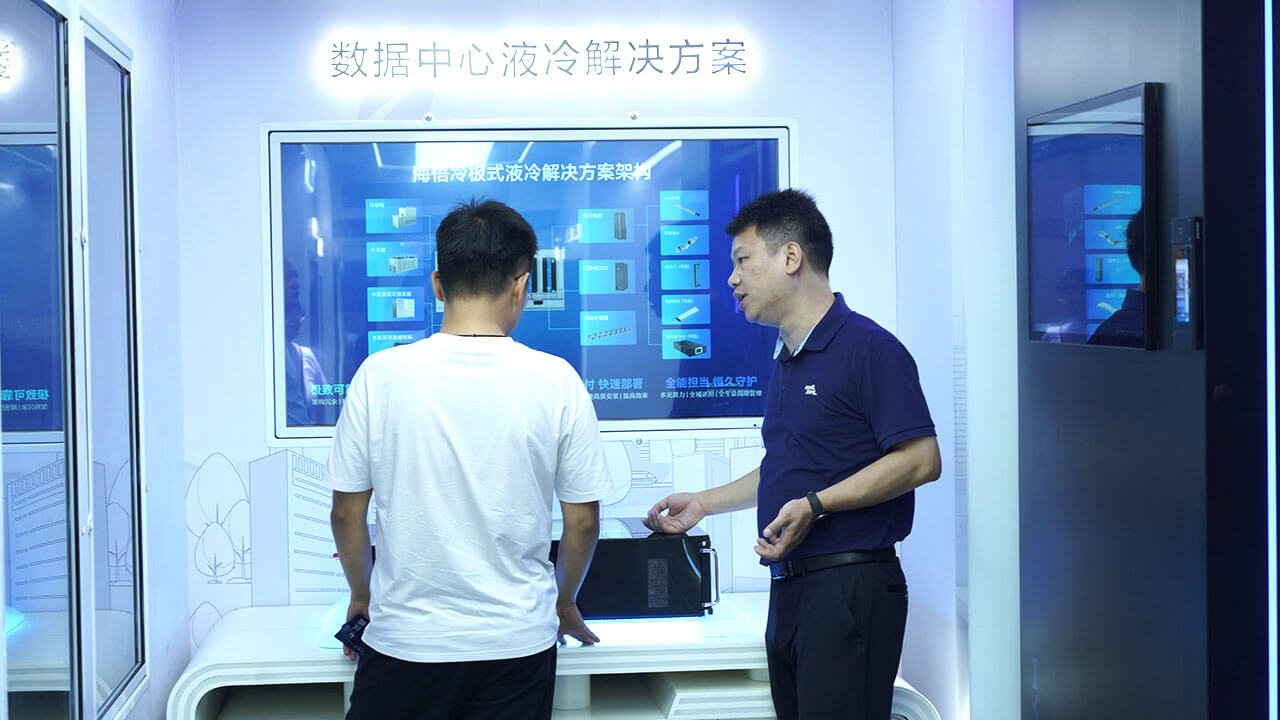 最令人期待的莫過(guò)于展車(chē)參觀環(huán)節(jié)。海悟集團(tuán)精心打造的“極致節(jié)能零碳未來(lái)”展車(chē),仿佛一個(gè)微縮的綠色數(shù)據(jù)中心世界。在這里,嘉賓們可以近距離接觸HyperBlock系列微模塊數(shù)據(jù)中心、邊緣數(shù)據(jù)中心解決方案、數(shù)據(jù)中心液冷解決方案等前沿科技產(chǎn)品,親身體驗(yàn)綠色科技的魅力。