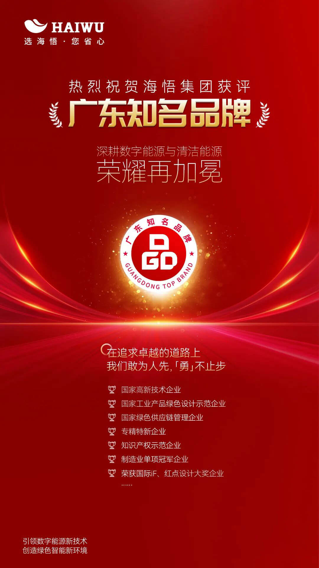 創(chuàng)新為源,品牌為本。近日,廣東省企業(yè)品牌建設(shè)促進會、廣東知名品牌評價專業(yè)委員會公布了第八批“廣東知名品牌”評定名單,海悟以強勁的企業(yè)實力和優(yōu)秀的市場表現(xiàn),成功獲評“廣東知名品牌”稱號,彰顯了海悟深耕數(shù)字能源和清潔能源產(chǎn)業(yè)的卓越成就,充分證明了社會對海悟綜合實力與商業(yè)價值的高度認可與肯定。