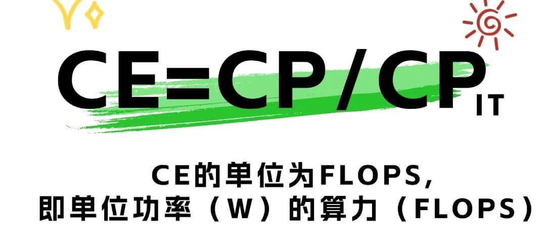 算效(CE,ComputationalEmciency)是指數(shù)據(jù)中心算力與功率的比值,即“數(shù)據(jù)中心每瓦功率所產(chǎn)生的算力”,是同時考慮數(shù)據(jù)中心計算性能與功率的種效率。數(shù)值越大,代表單位功率的算力越強,效能越高。若CP為以單精度浮點數(shù)(FP32)的數(shù)據(jù)中心的算力,PC為數(shù)據(jù)中心IT設備的整體功率,其單位為瓦(W),則算效CE的計算公式為: