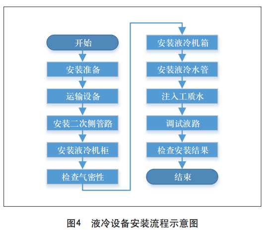 針對采用冷板式冷卻方式的液冷設(shè)備及機(jī)柜的安裝,流程如圖4所示。