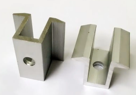 圖10為光伏常用壓塊和墊片,壓塊與墊片采用螺栓擰緊,中間夾光伏組件實現(xiàn)固定。