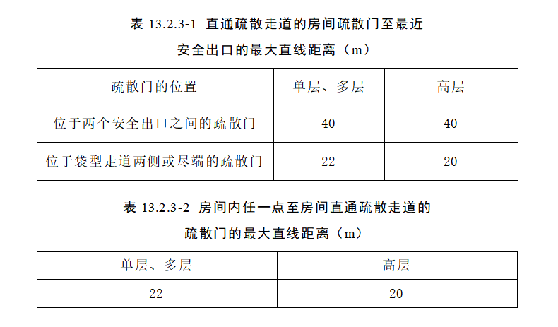 當數(shù)據(jù)中心按照民用建筑設計時,直通疏散走道的房間疏散門至最近安全出口的直線距離不應大于表 13.2.3-1的規(guī)定。各房間內任一點至房間疏散門的直線距離不應大于表13.2.3-2的規(guī)定。建筑內全部采用自動滅火系統(tǒng)時,采用自動噴水滅火系統(tǒng)的區(qū)域,安全疏散距離可增加25%。
