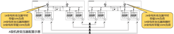 C級(jí)機(jī)房?jī)H需要從同一個(gè)高壓站引兩路電源即可;若C級(jí)機(jī)房改B級(jí)機(jī)房,在有條件的情況下,應(yīng)由不同的高壓站各引一路電源;若C級(jí)機(jī)房改A級(jí)機(jī)房,則必須由不同的高壓站各引一路電源,在一路電源故障時(shí),另一路電源不應(yīng)同時(shí)受到損壞。