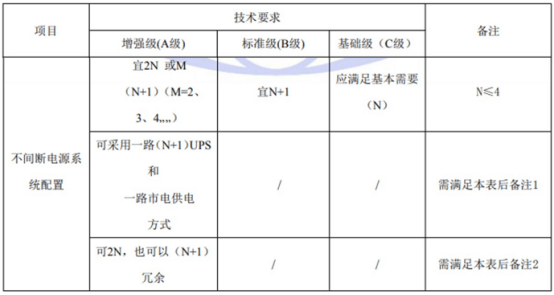 國(guó)標(biāo)GB50174-2017《數(shù)據(jù)中心設(shè)計(jì)規(guī)范》中對(duì)于A、B、C三級(jí)數(shù)據(jù)中心不間斷電源系統(tǒng)架構(gòu)的具體要求如下: