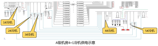 C級(jí)機(jī)房無(wú)冷機(jī)末端切換要求;若C級(jí)機(jī)房改B級(jí)、A級(jí)機(jī)房,則部分冷機(jī)需做末端互投,以保證在一個(gè)變電所完全斷電時(shí),另一個(gè)變電所可以帶載滿(mǎn)足機(jī)房冷卻工況的全部冷機(jī)。
