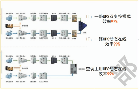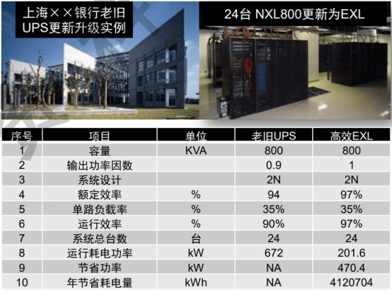 上海某銀行老舊UPS改為高效節(jié)能型UPS后,運(yùn)行效率可從90%提升至97%。