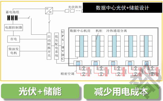 項(xiàng)目可根據(jù)當(dāng)?shù)厍闆r增加光伏儲(chǔ)能一體化設(shè)備,光伏、谷電、平電為儲(chǔ)能系統(tǒng)充電,峰電時(shí)段儲(chǔ)能系統(tǒng)放電,減少機(jī)房用電成本。