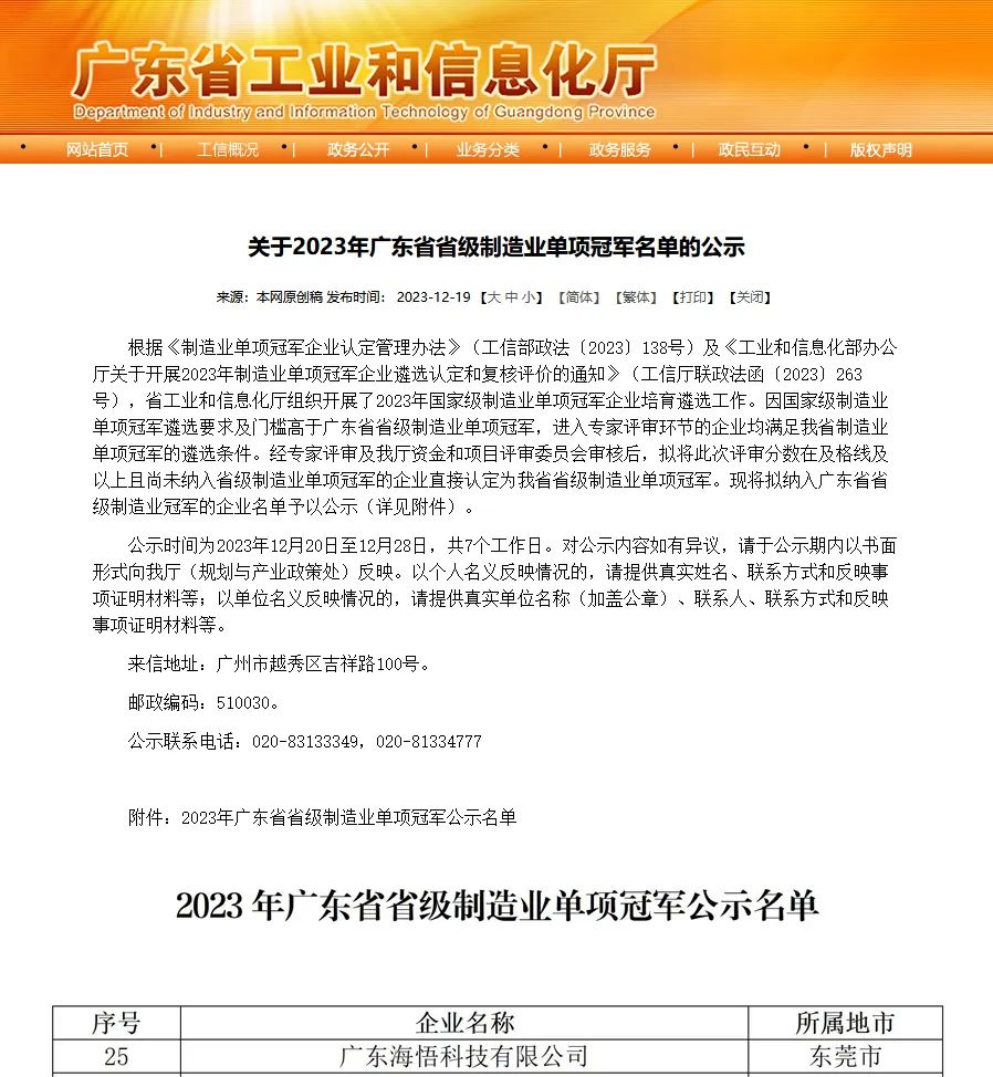 在廣東省制造業(yè)高質(zhì)量發(fā)展的浪潮中,廣東海悟科技有限公司憑借卓越的自主創(chuàng)新能力和生產(chǎn)制造能力,成功脫穎而出,榮獲廣東省省級(jí)制造業(yè)單項(xiàng)冠軍稱(chēng)號(hào)。這一榮譽(yù)不僅彰顯了海悟在制造業(yè)領(lǐng)域的領(lǐng)先地位,更是對(duì)其長(zhǎng)期以來(lái)堅(jiān)持創(chuàng)新驅(qū)動(dòng)、專(zhuān)注自主研發(fā)的肯定。