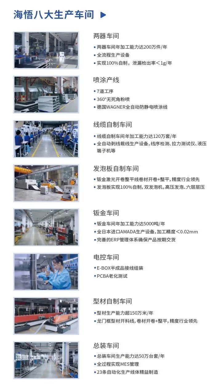 海悟產(chǎn)業(yè)園區(qū)擁有八大生產(chǎn)車(chē)間,是行業(yè)內(nèi)規(guī)模最大的生產(chǎn)基地之一。憑借先進(jìn)的工藝和自動(dòng)化設(shè)備,海悟?qū)崿F(xiàn)了兩器、鈑金、線(xiàn)纜、管路、型材、發(fā)泡板材、電控等關(guān)鍵零部件的百分百自制。公司嚴(yán)格按照ISO9001質(zhì)量管理體系、車(chē)規(guī)級(jí)IATF16949等體系進(jìn)行全面質(zhì)量管理,確保產(chǎn)品質(zhì)量穩(wěn)定可靠。