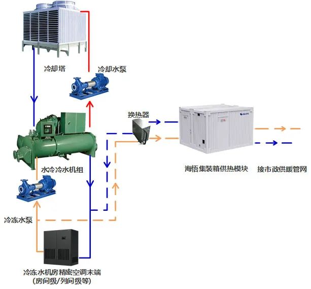 住房城鄉(xiāng)建設(shè)部印發(fā)的《綠色數(shù)據(jù)中心建筑評(píng)價(jià)技術(shù)細(xì)則》指出:數(shù)據(jù)中心輔助區(qū)和周邊區(qū)域有供暖或生活熱水需求時(shí),宜設(shè)計(jì)能量綜合利用方案,回收主機(jī)房空調(diào)系統(tǒng)的排熱作為熱源,宜采用熱泵機(jī)組回收排熱。