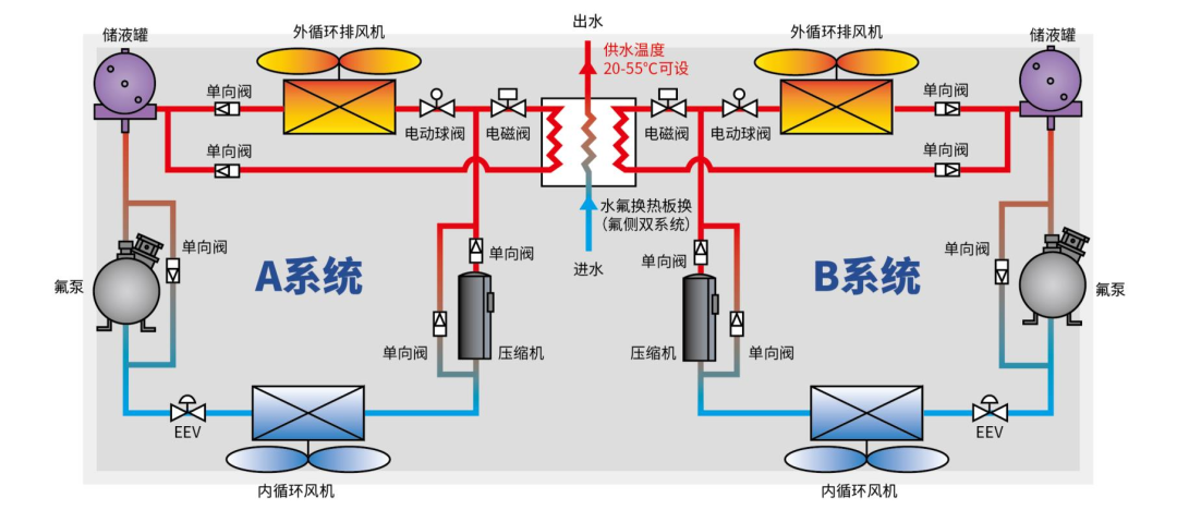圖3 熱回收型PHU整體氟泵機(jī)組原理