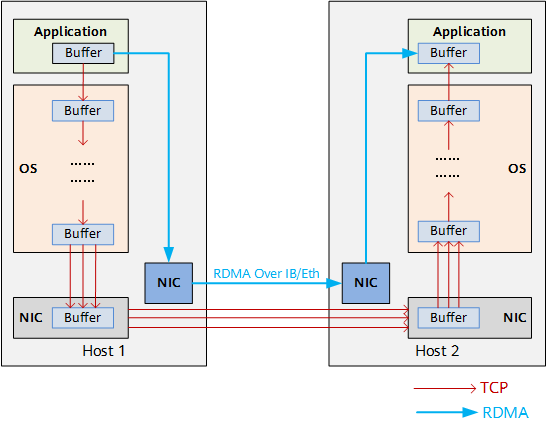 RDMA(Remote Direct Memory Access)允許應(yīng)用與網(wǎng)卡之間的直接數(shù)據(jù)讀寫,將服務(wù)器內(nèi)的數(shù)據(jù)傳輸時(shí)延降低到接近1us。同時(shí),RDMA允許接收端直接從發(fā)送端的內(nèi)存讀取數(shù)據(jù),極大減少了CPU的負(fù)擔(dān)。