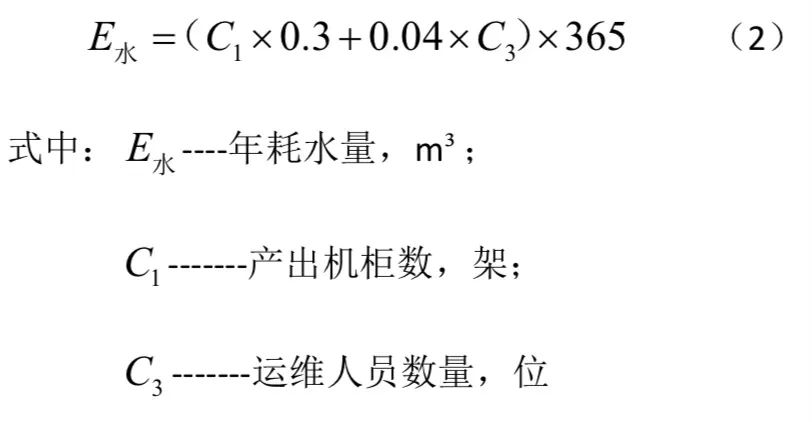 數(shù)據(jù)中心水資源消耗量,包含空調(diào)系統(tǒng)補(bǔ)水消耗量以及辦公生活用水消耗量?jī)刹糠?,?調(diào)補(bǔ)水消耗量可按每機(jī)柜每天消耗0.3m3水估算,辦公生活用水可按每人每天 40L 估算,計(jì) 算公式如下: