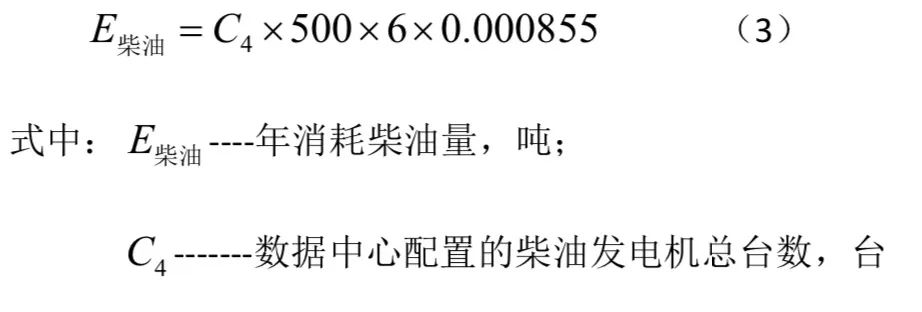 數(shù)據(jù)中心多采用10kV 基本功率為 2000kW 柴油發(fā)電機(jī)組,根據(jù)經(jīng)驗(yàn)值每臺(tái)機(jī)組每小時(shí) 消耗柴油 500升,按每月每臺(tái)柴油發(fā)電機(jī)保養(yǎng)檢修運(yùn)行 30 分鐘估算,每臺(tái)柴油發(fā)電機(jī)每年 運(yùn)行 6 小時(shí),由此可求出數(shù)據(jù)中心每年柴油消耗量,計(jì)算公式如下: