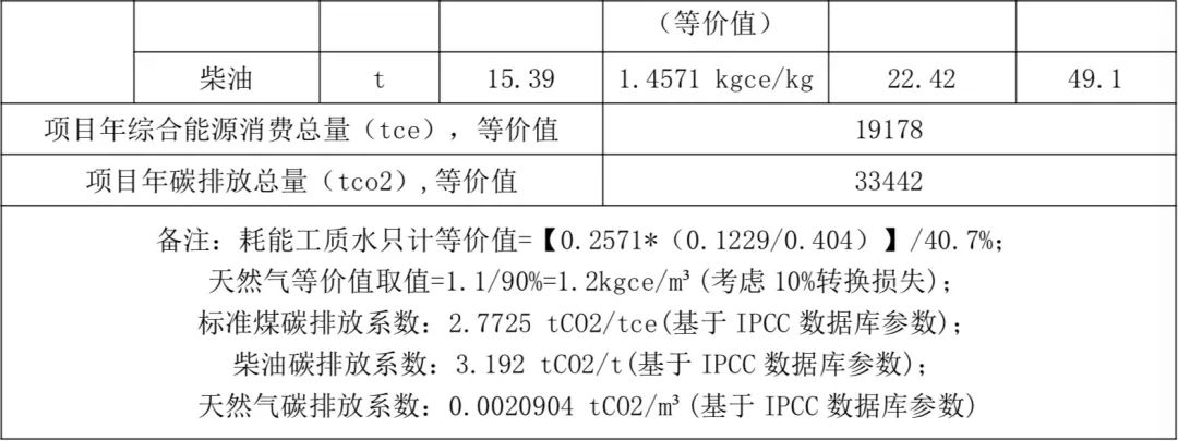 表5 項(xiàng)目綜合能源消耗計(jì)算及碳排放核算(天然氣發(fā)電)